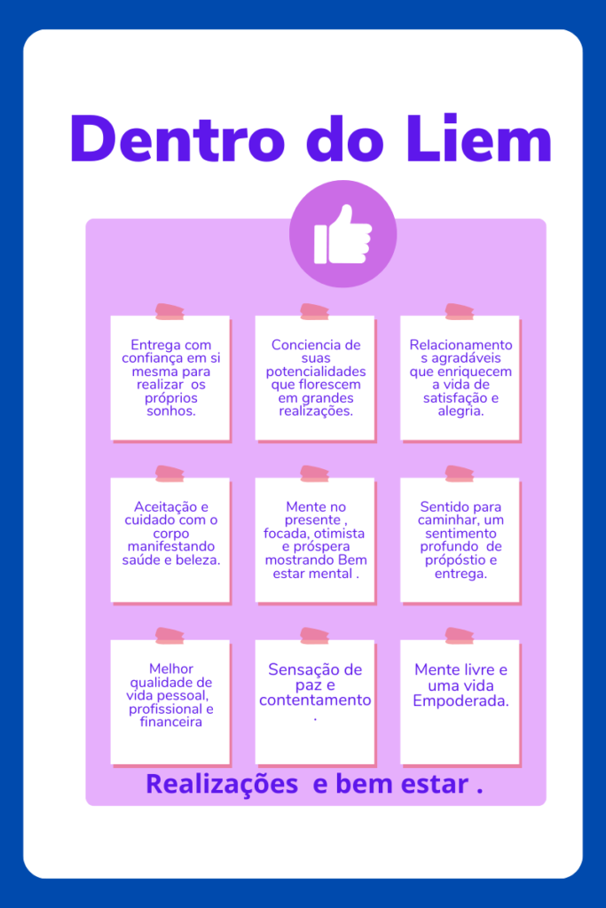 O curso LIEM tem o propósito de auxiliar as mulheres na mudança de sua autoestima. Ele não se propõe a fazer essa mudança no lugar delas. Essa mudança somente a própria pessoa pode fazer. O LIEM é um caminho rico de oportunidade para que essa mulher possa ter instrumentos, para fazer o que ela puder e desejar fazer para modificar sua própria autoestima. Portanto, esse curso não poderá ser jamais o responsável pela mudança de nenhuma mulher. Ele é um potente mediador e somente ela pode mudar a ela mesma! Além disso, lembramos que este não é um curso para atendimento psicológico on line. Se você faz psicoterapia, permaneça com o seu profissional. Nossa intenção não é substituí-lo. Nosso curso soma para o seu processo de desenvolvimento pessoal!