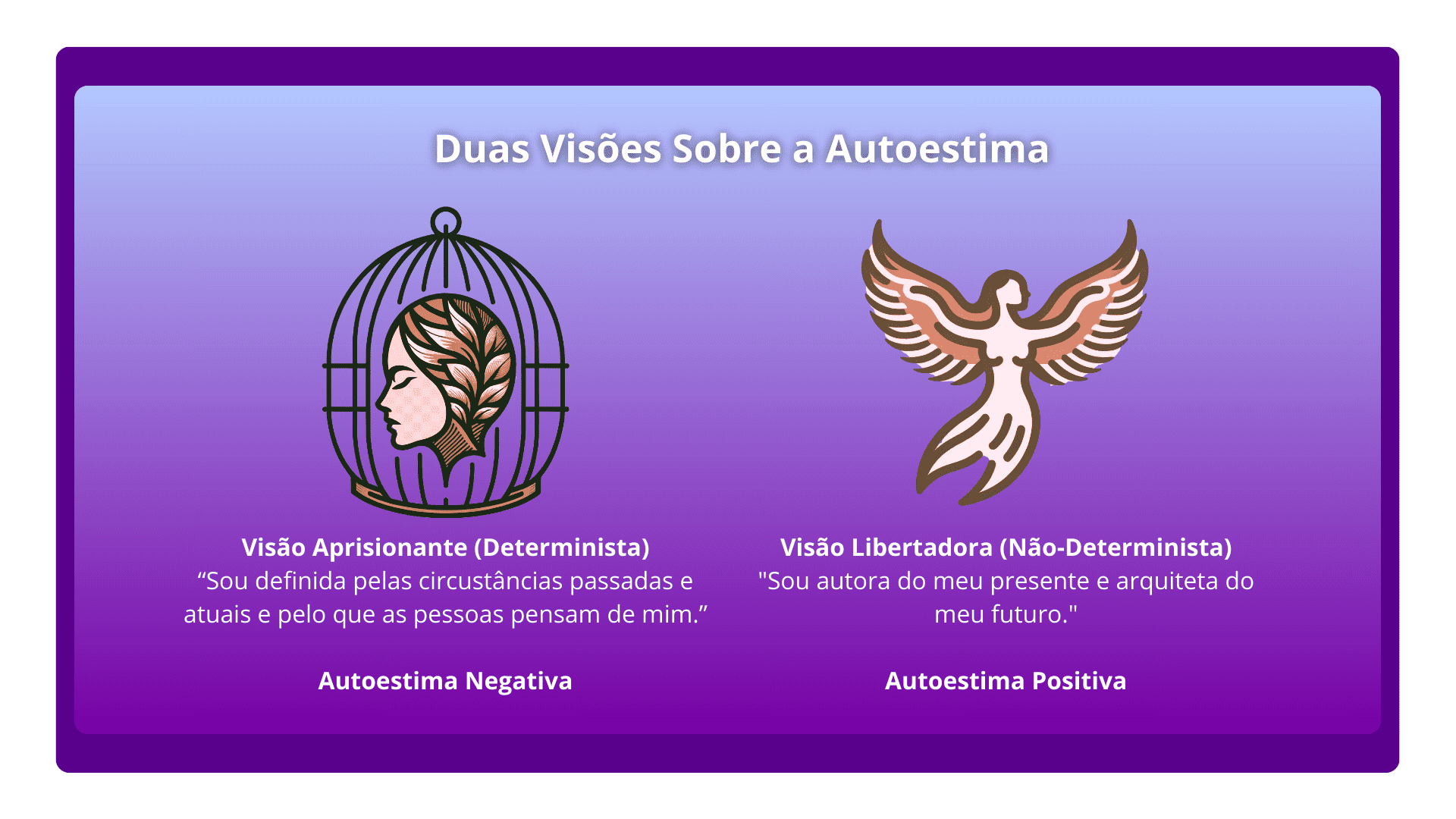 Você conhecerá uma forma diferente de olhar para si mesma que foge ao padrão determinista que diz que você é assim e será sempre assim para uma visão que te mostra que você pode mudar.